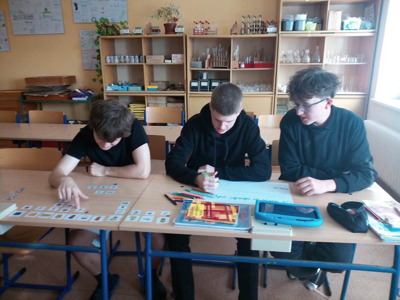 Součástí hodiny byla i hravá aktivita – žáci si zahráli pexeso a přiřazovali obrázky týkající se správného třídění odpadu. Díky tomu si zábavnou formou upevnili znalosti o tom, kam jednotlivé druhy odpadu patří.