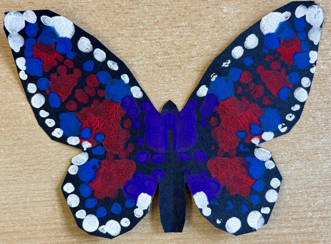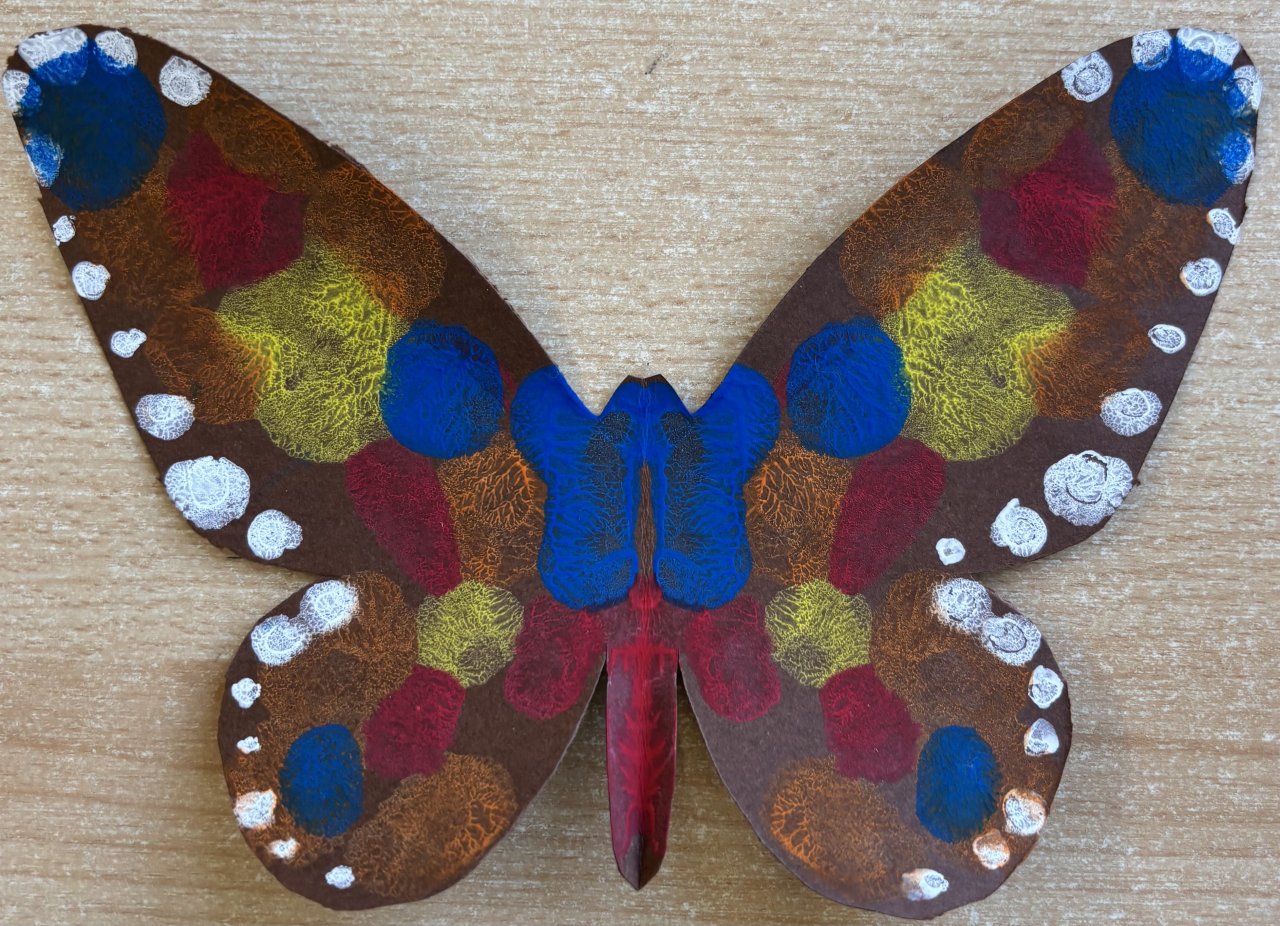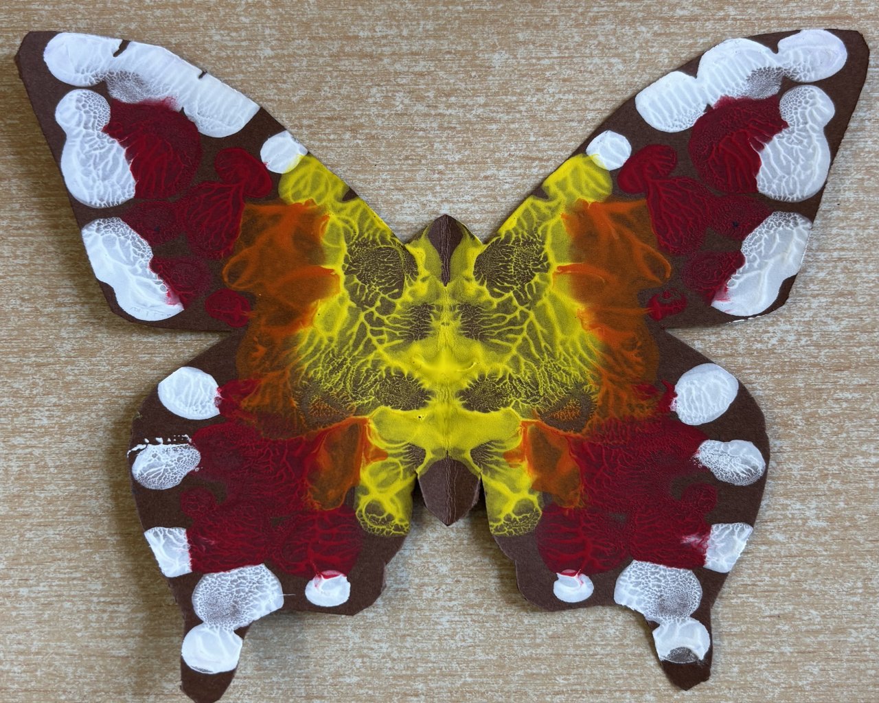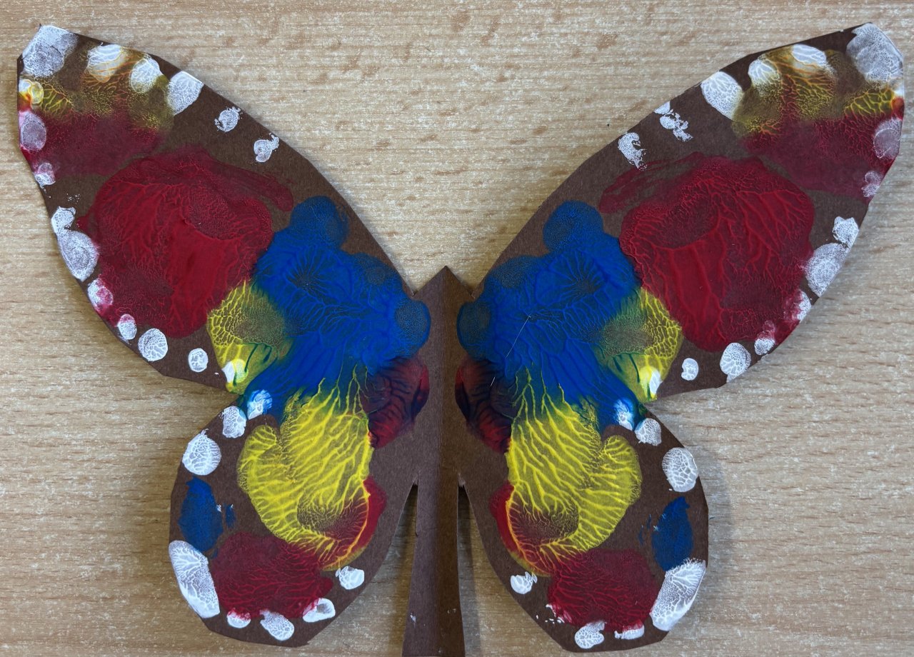 Datum: 19. 3. 2026Děti si ve výtvarné výchově přivolaly jaro. Obkreslily a vystřihly si tvar motýla. Vytvořily jednoduchý monotyp – na jednu polovinu křídla nanášely temperové barvy pomocí vatových tyčinek. Po přiklopení a otisknutí barev na druhou stranu je při otevření motýla čekalo krásné a barevně zajímavé překvapení.