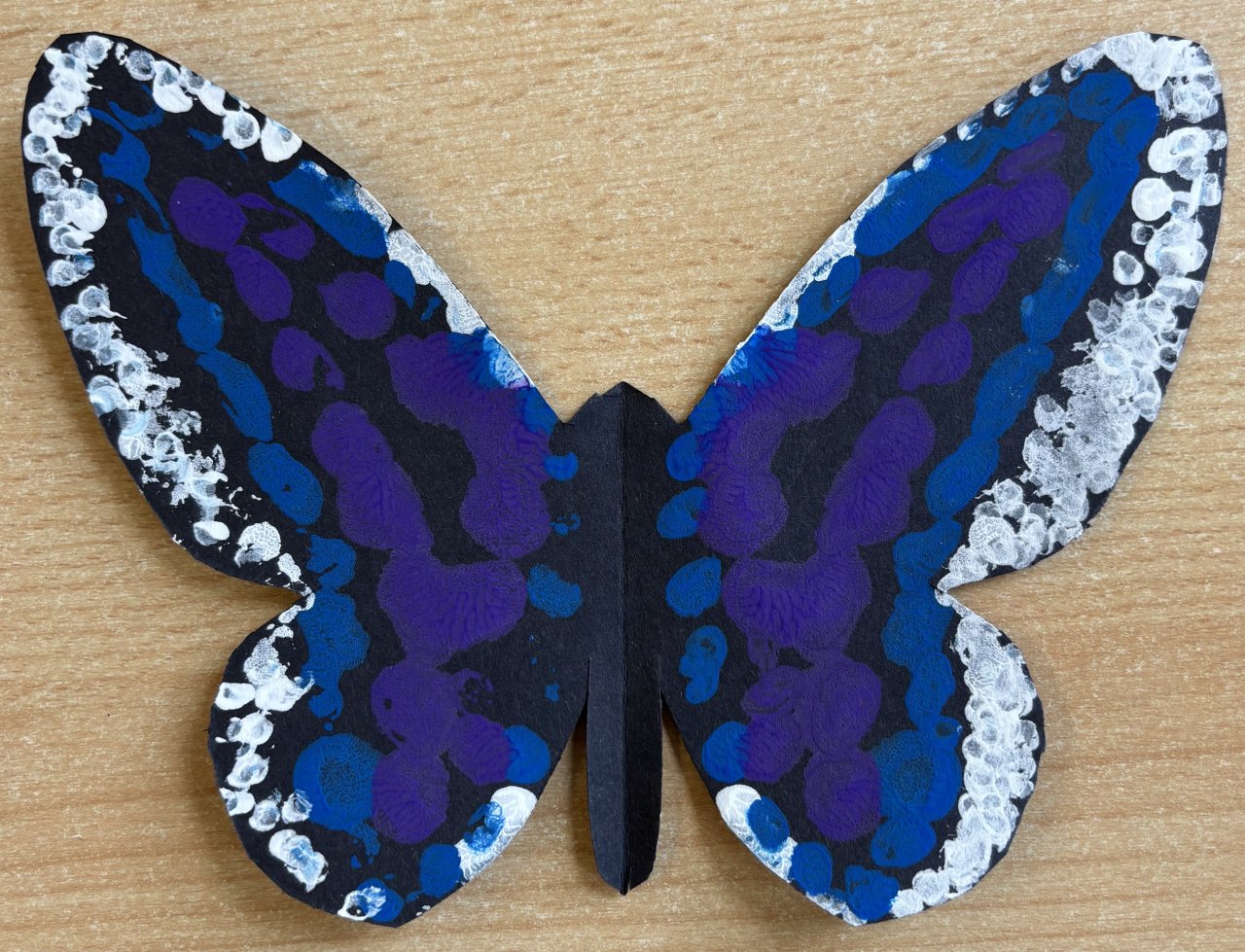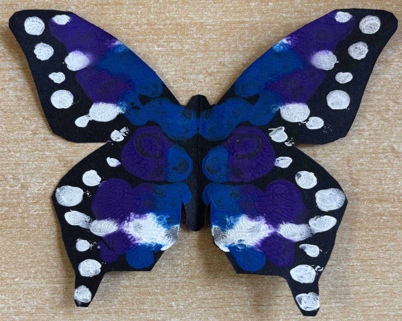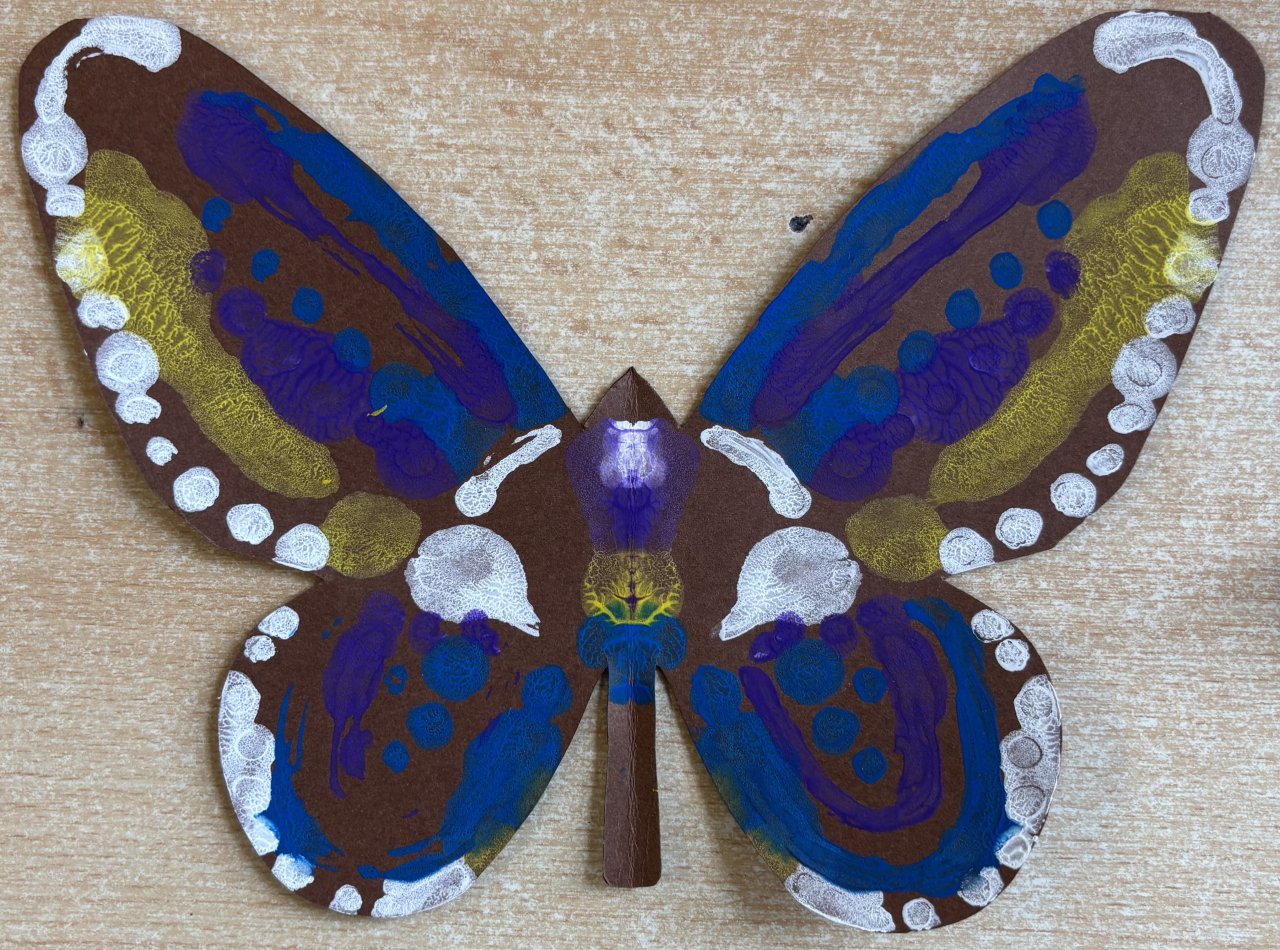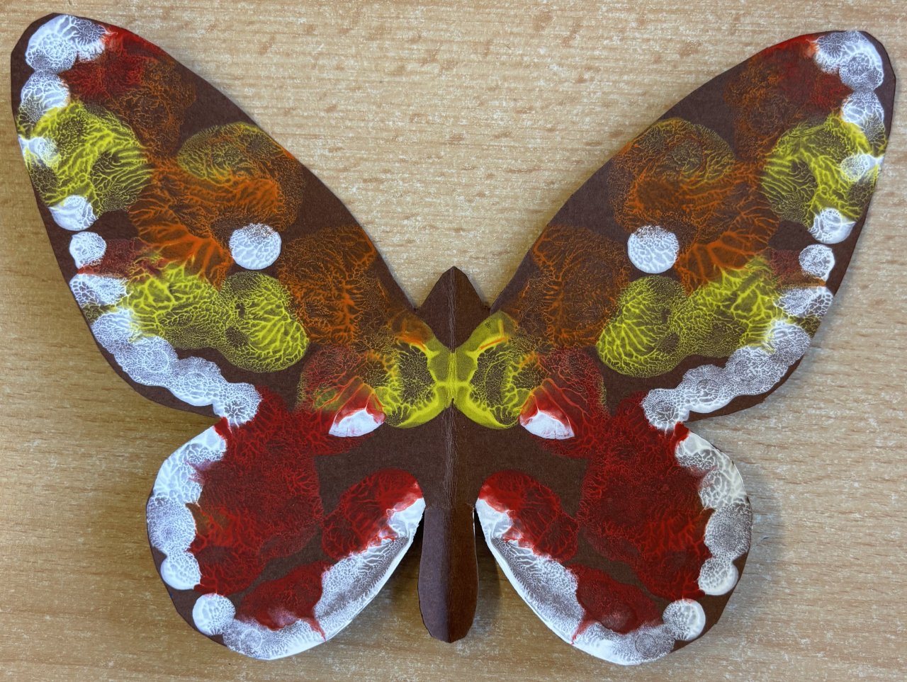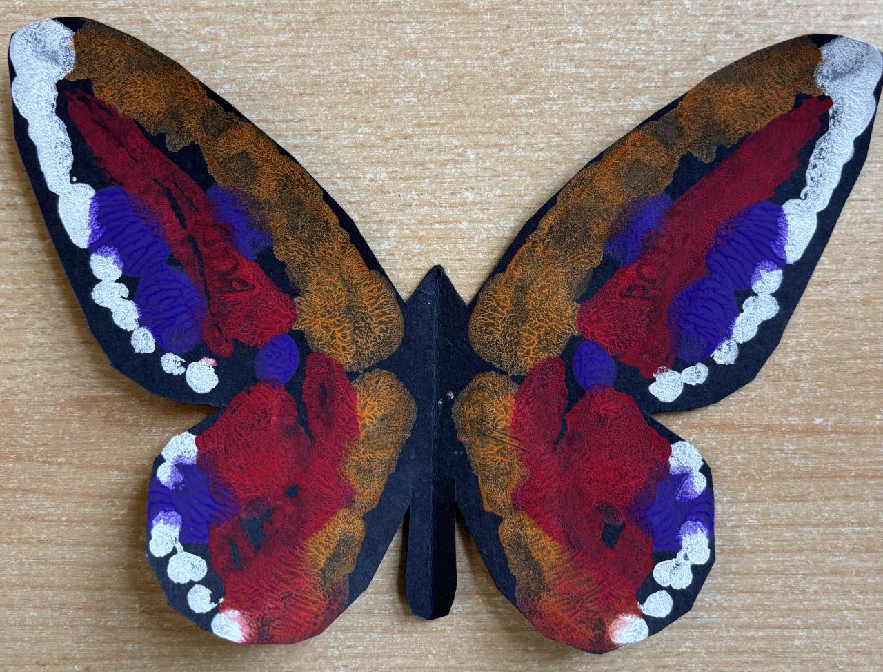 Datum: 19. 3. 2026Děti si ve výtvarné výchově přivolaly jaro. Obkreslily a vystřihly si tvar motýla. Vytvořily jednoduchý monotyp – na jednu polovinu křídla nanášely temperové barvy pomocí vatových tyčinek. Po přiklopení a otisknutí barev na druhou stranu je při otevření motýla čekalo krásné a barevně zajímavé překvapení.