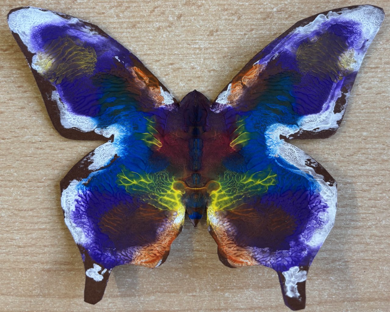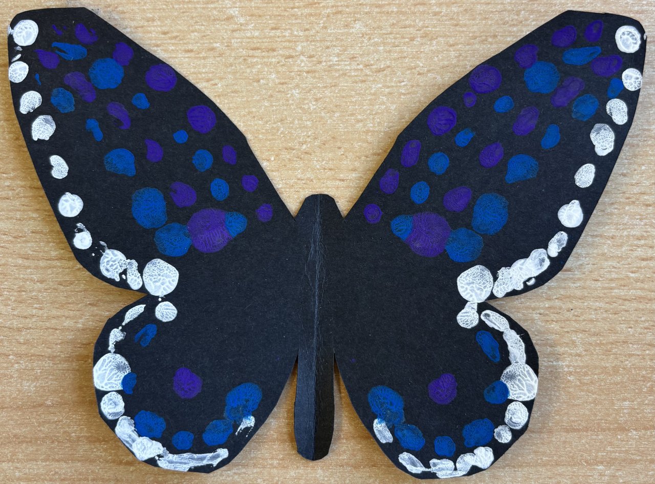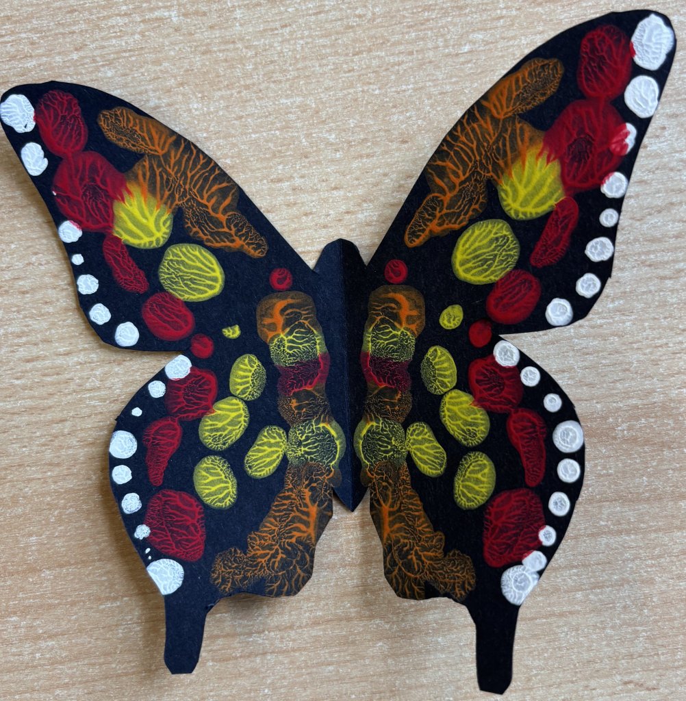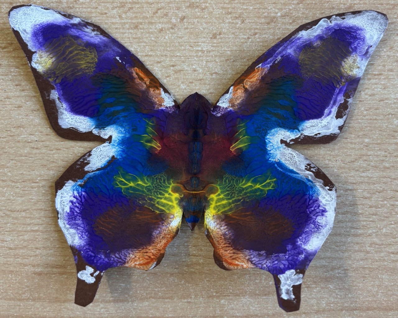 Datum: 19. 3. 2026Děti si ve výtvarné výchově přivolaly jaro. Obkreslily a vystřihly si tvar motýla. Vytvořily jednoduchý monotyp – na jednu polovinu křídla nanášely temperové barvy pomocí vatových tyčinek. Po přiklopení a otisknutí barev na druhou stranu je při otevření motýla čekalo krásné a barevně zajímavé překvapení.