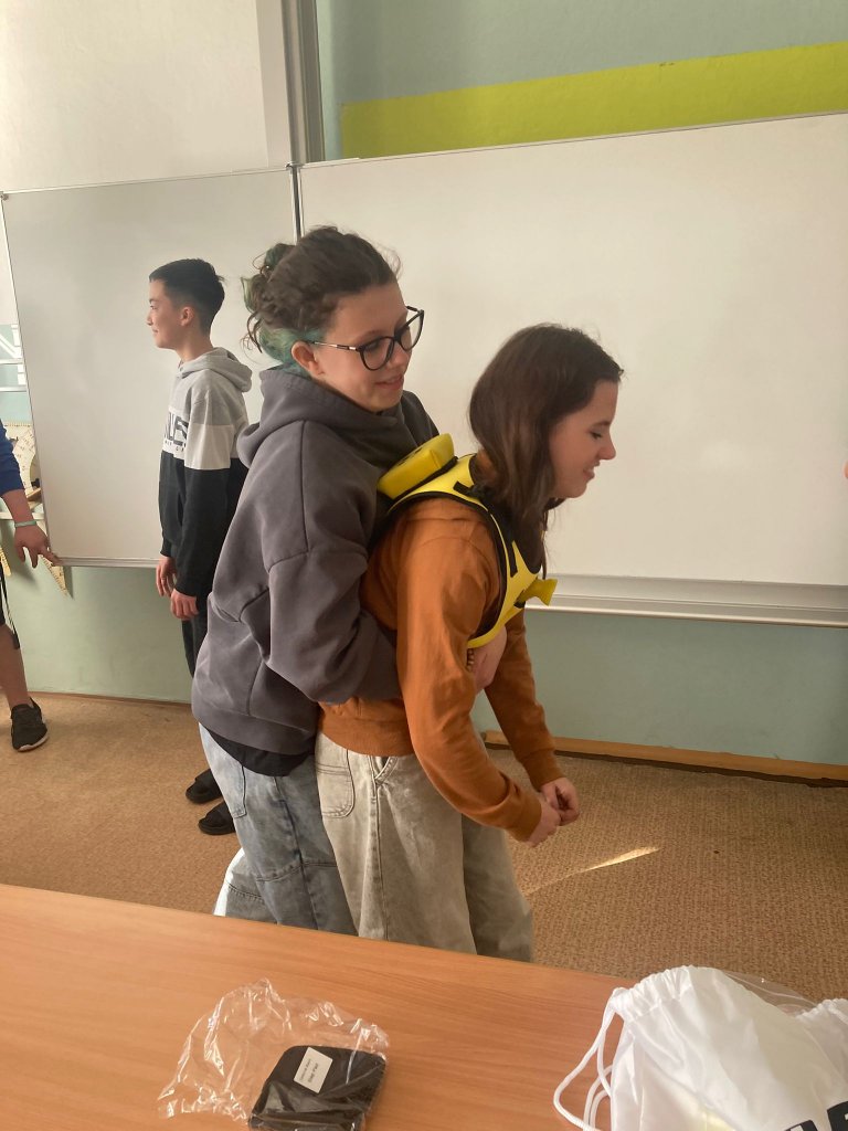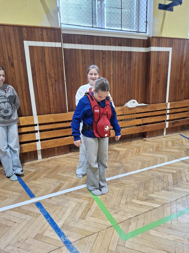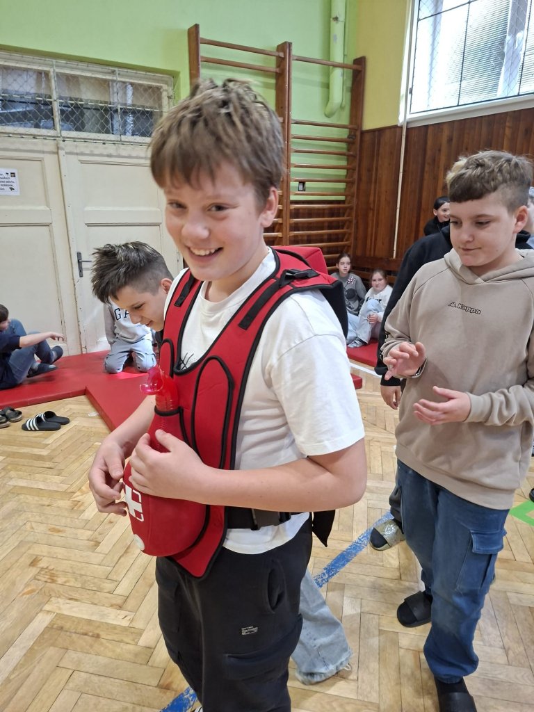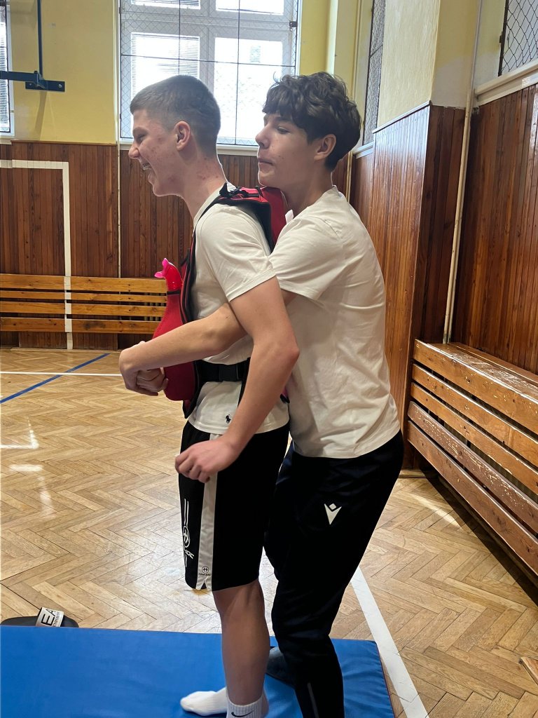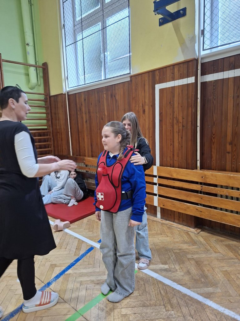 Datum: 25. 3. 2026Čtvrteční výuka 25. 3. 2026 byla pro žáky 2. stupně praktická. Každé třídě byla jednu vyučovací hodinu věnována v rámci první pomoci řízená beseda a praktická ukázka tzv. Heimlichova manévru (chvatu). Žáci se dozvěděli něco o historii této techniky a jak Heimlichúv chvat správně provést. Sami si ho mohli vyzkoušet na trenažérových vestách, které byly určeny pro dítě i pro dospělého jedince. Pro některé žáky to bylo náročně, ale společně jsme vše zvládli. Teď už víme, jak pomoci, když se někdo dusí.