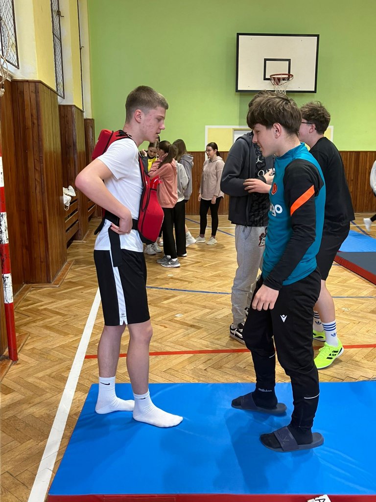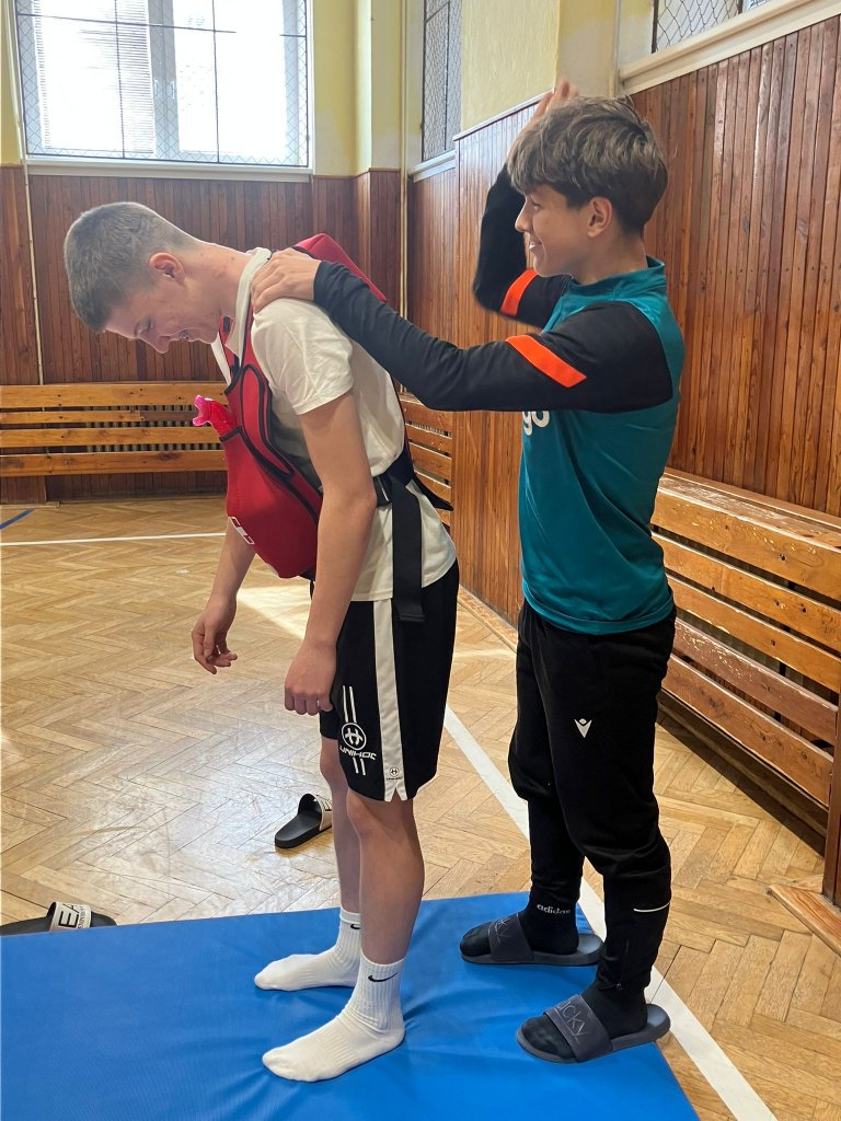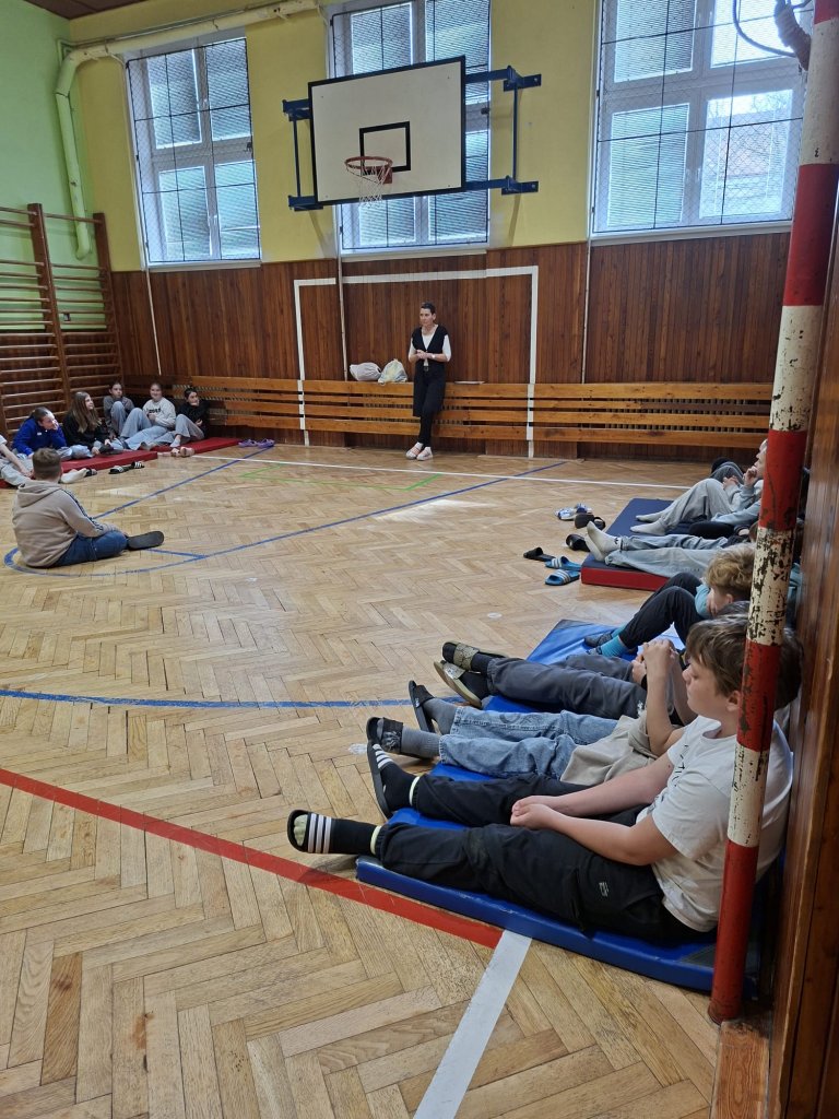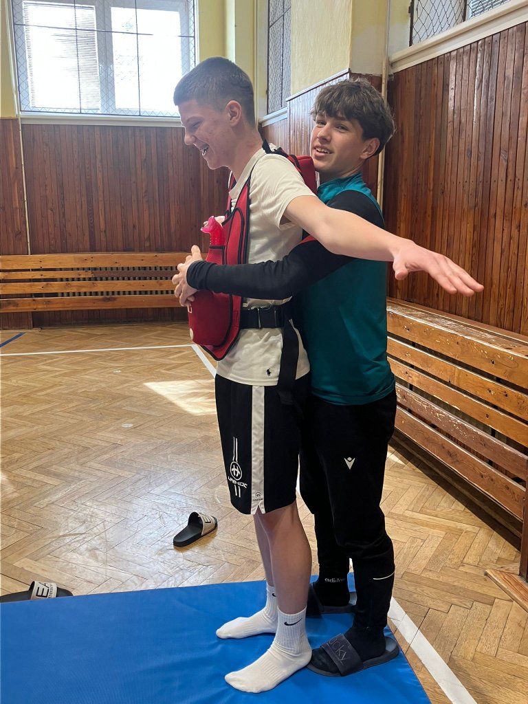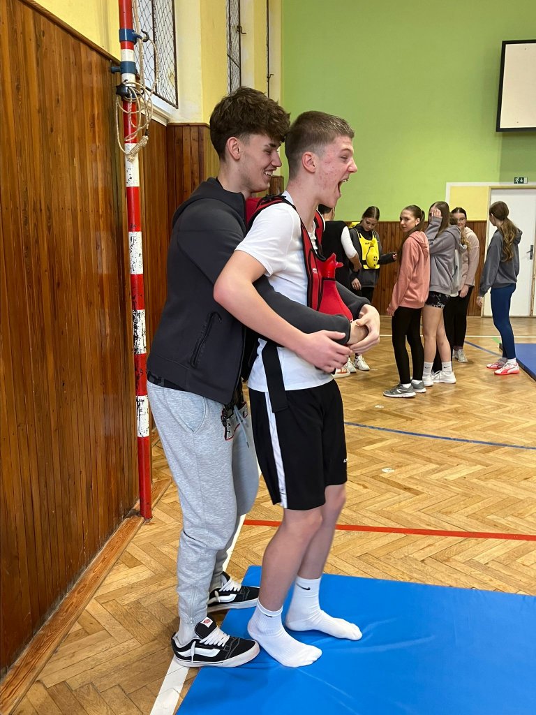 Datum: 25. 3. 2026Čtvrteční výuka 25. 3. 2026 byla pro žáky 2. stupně praktická. Každé třídě byla jednu vyučovací hodinu věnována v rámci první pomoci řízená beseda a praktická ukázka tzv. Heimlichova manévru (chvatu). Žáci se dozvěděli něco o historii této techniky a jak Heimlichúv chvat správně provést. Sami si ho mohli vyzkoušet na trenažérových vestách, které byly určeny pro dítě i pro dospělého jedince. Pro některé žáky to bylo náročně, ale společně jsme vše zvládli. Teď už víme, jak pomoci, když se někdo dusí.