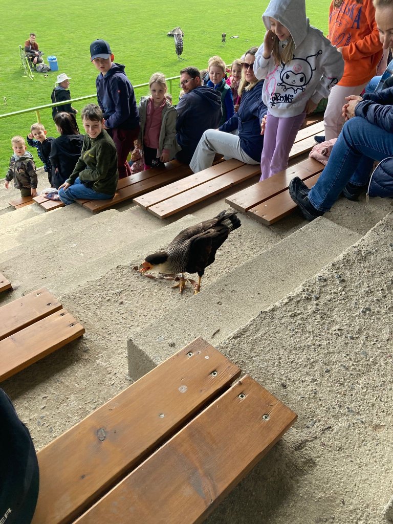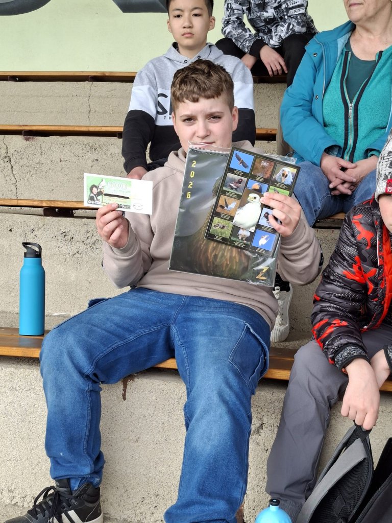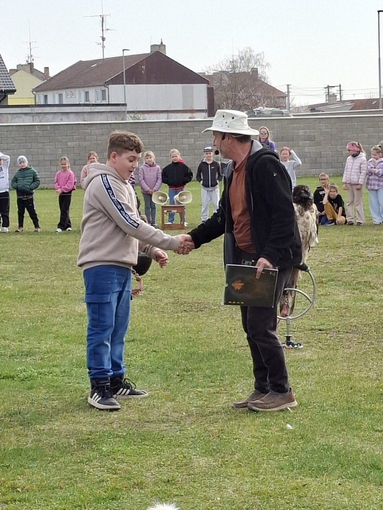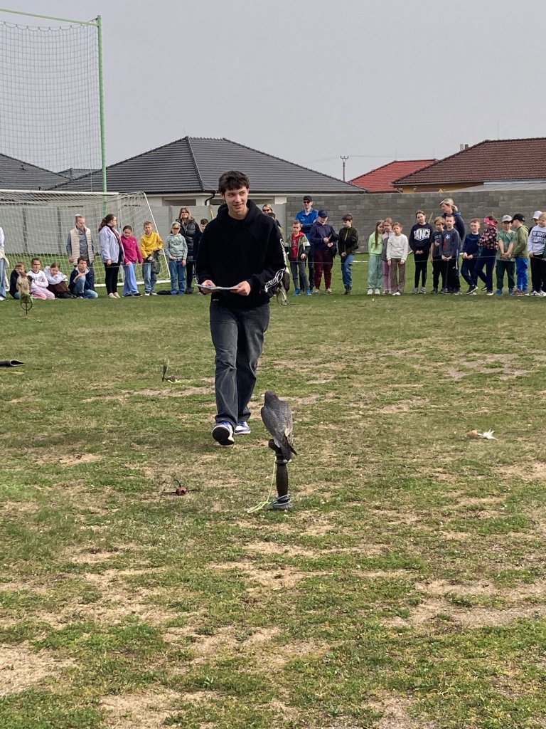 Součástí akce byla také soutěž o věcné ceny a pro vybrané žáky jedinečná příležitost vyzkoušet si vypuštění dravce z ruky a jeho následné přivolání zpět. Nechyběly ani dynamické ukázky lovu a letového chování, které všechny přítomné velmi zaujaly.