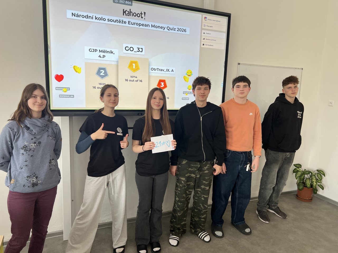 Datum: 29. 3. 2026Vybraní žáci 7., 8. a 9. třídy se zúčastnili národního kola finančně-vědomostní soutěže European Money Quiz, kterou pořádá Evropská bankovní federace (EBF) a v České republice ji organizuje Česká bankovní asociace.
